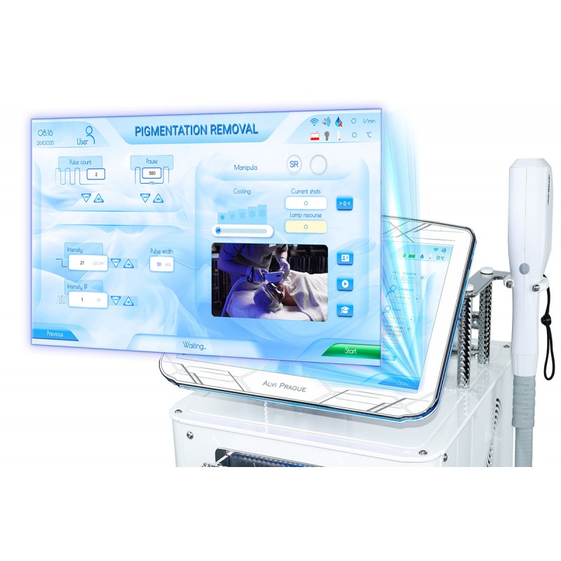 Ve stavovém panelu se neustále zobrazuje stav systému a v protokolu událostí jsou zaznamenány všechny zprávy pro technickou diagnostiku. Fotoepilátor je vybaven velkým 15,6" dotykovým displejem s intuitivním menu, které umožňuje snadné ovládání všech parametrů bez složitých úprav.