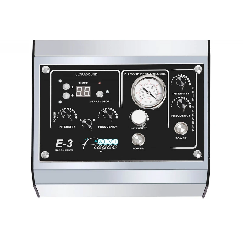 Multifunkční kosmetický přístroj E-3 má malou hmotnost (5 kg) a malé rozměry, což usnadňuje jeho přepravu a používání i v podmínkách výrazného nedostatku místa. Jasné a dobře promyšlené ovládaní se skládá z několika tlačitek a otočných regulatorů pro výběr požadovaného výkonu, intenzity, ultrazvukového kmitočtového rozsahu, doby procedury a je zřetelně rozdělena podle typu procedury: "Ultrasuond" (ultrazvuk), "Diamond dermabrasion" (diamantová dermabraze) "Scrubber" (ultrazvuková špachtle).