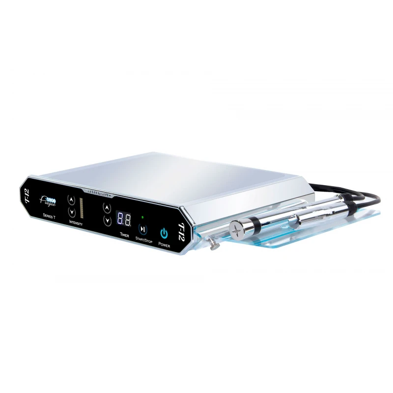 Přístroj neinvazivní mezoterapie T-12 je vybaven dvěma aplikačními hlavicemi, které zajišťují přenos bezpečných dávek elektrického proudu. Nástavce se používají k modelování impulsního proudu v omezeném rozsahu – od 2,5 do 5 kHz.