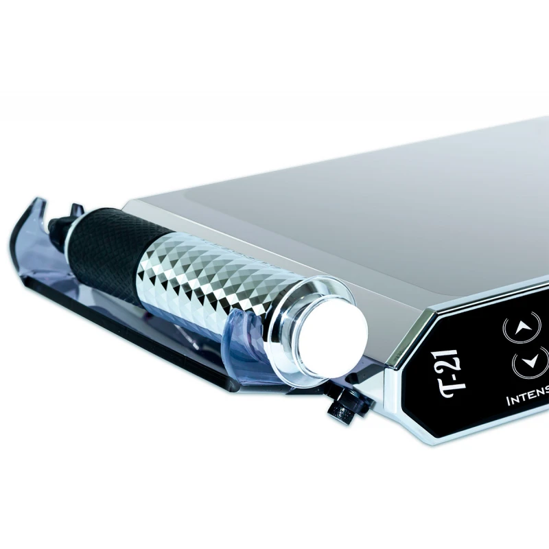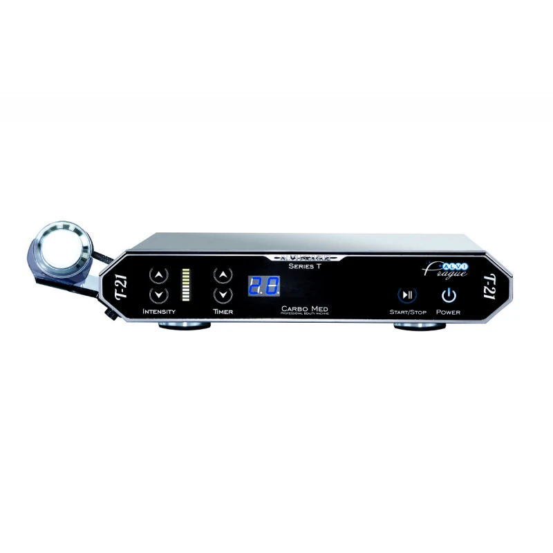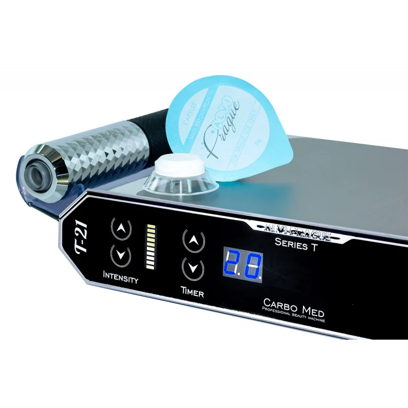 Přístroj pro neinvazivní karboxyterapii T-21 je nejnovějším vývojem, jehož vzhled navazuje na řadu již osvědčených přístrojů CarboMED. Nové zařízení je určeno pro profesionální použití s cílem transdermálního zavedení CO2 do tkání obličeje a těla - bez injekcí a aplikaci tkáňových masek.