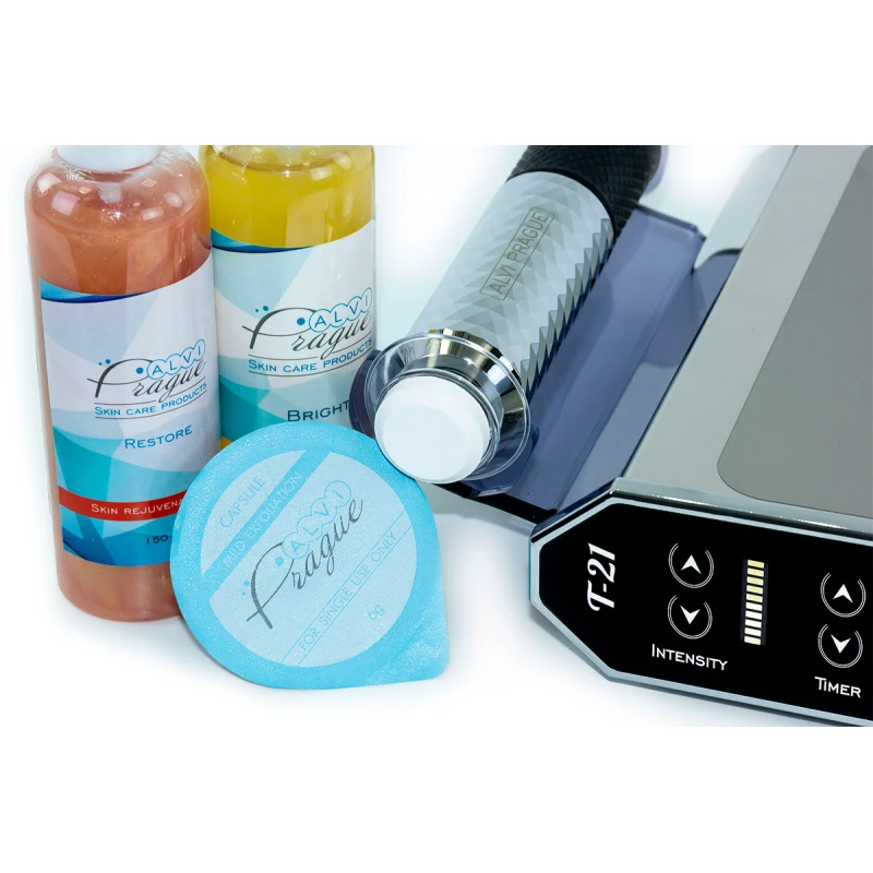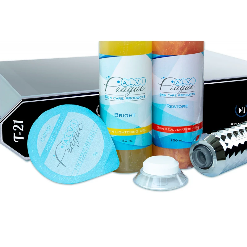 Přístroj pro neinvazivní karboxyterapii T-21 je unikátní technologie implementovaná v konstrukci pracovního násadce. Na jeho tělo je umístěna speciální tableta s aktivními přírodními složkami. Interakce s procedurálním gelem tvoří potřebný pro procedury Oxid uhličitý.