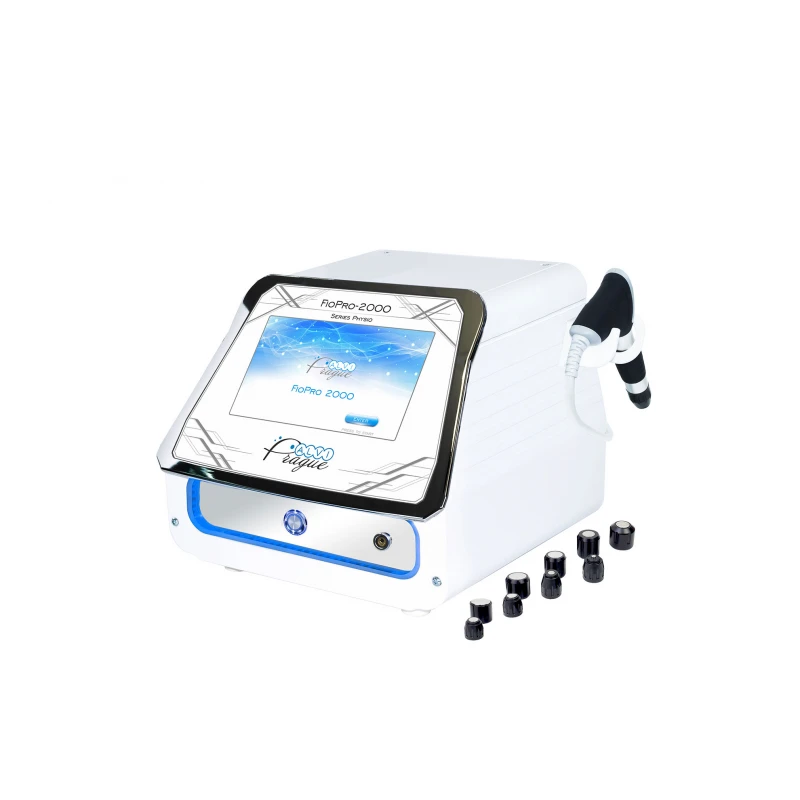 Přistroj terapií rázovou vlnou FioPro 2000 je inteligentní zařízení s dotykovou obrazovkou ovládacího systému. Velmi kompaktní, ergonomické a esteticky atraktivní zařízení převádí elektrický proud na mechanické vibrace, které vykazují vysokou energetickou amplitudu a krátké trvání pulsu s pracovní frekvencí 1-21 Hz. Impulzy vytvářené zařízením snadno a bezbolestně pronikají do měkkých tkání těla a působí terapeuticky na husté formace těla - kost, chrupavka, tuková tkáň a patologické formace.